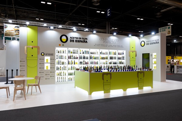La campaña, representada por el icónico bolso-contenedor de AOVE diseñado por Palomo protagoniza el stand de Aceites de Oliva de España en la edición de Gourmets de este año