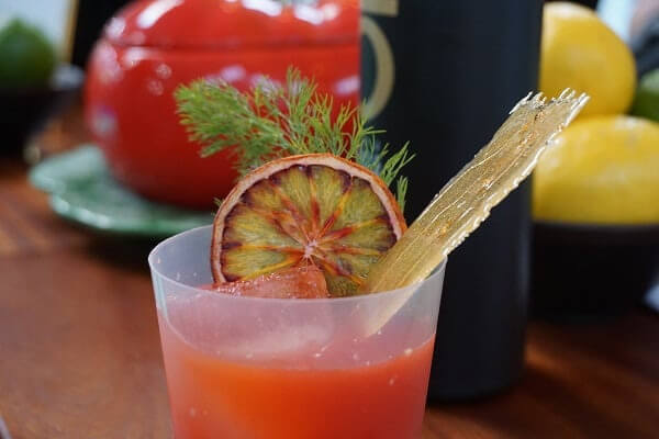 2. Servimos sobre un vaso, completamos con la kombucha y decoramos.
